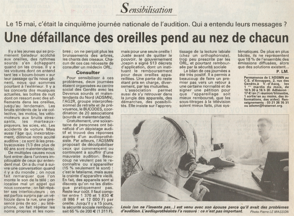 Une défaillance des oreilles pend au nez de chacun 18 mai, 2002 AdminTechnique La Voix du Nord – 18/05/2002